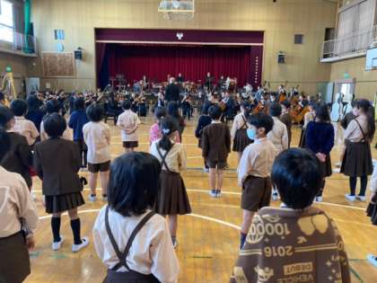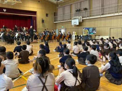 群馬交響楽団の皆さんによる演奏は、コロナ対策のうえで学年ごとに時間を区切って鑑賞しました。