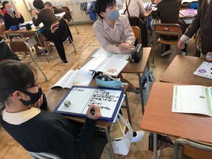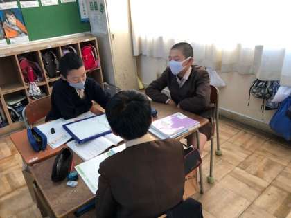 グループで、学校の必要な規則と必要ではないと思う規則について出し合い、交流しました。