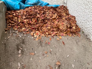 6年生が集めた落ち葉は、大きなゴミ袋で6杯もありました。園芸倉庫横に集めて、堆肥を作ります。