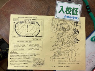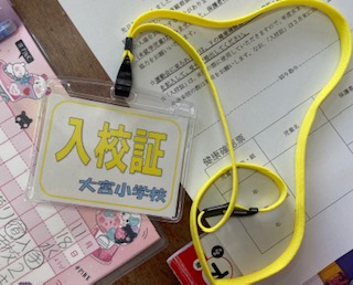 今日、大人用のプログラムと入校証を配りました。ご確認ください。入校証がなければ当日は入ることができません。お子様の名札の色と同じ色の紐がついています。、6年生だけは、白ではなく、黒になっています。