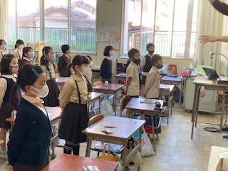 校歌の練習をしました。歌詞が、1番と2番で間違いやすいのですが、しっかり覚えてきれいな声で歌っていました。