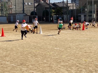 団体競技、個人走の最終練習です。主に、入退場を中心に確認をしました。今日はとても暑く、汗をたくさんかきました。「大宮宅急便」は、本番はもっとたくさんの荷物を運びます。