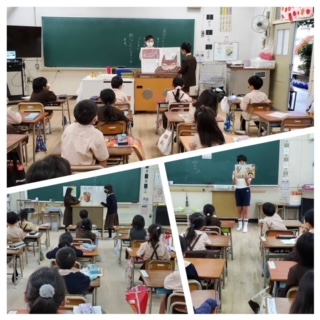今日は図書委員会児童が、低学年の6クラスに読み聞かせに行きました。どの学級も静かに聞いています。