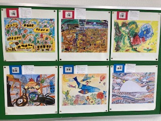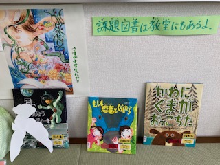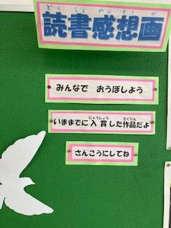 読書感想画の募集のお知らせが掲示してあります。昨年度の入賞作品のコピーも展示してあります。