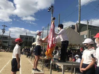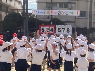 今年の運動会は、白組が勝ちました。でもどちらの組も競技演技、応援によく頑張りました!