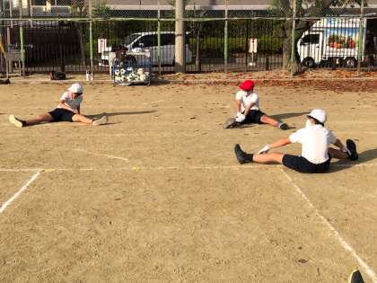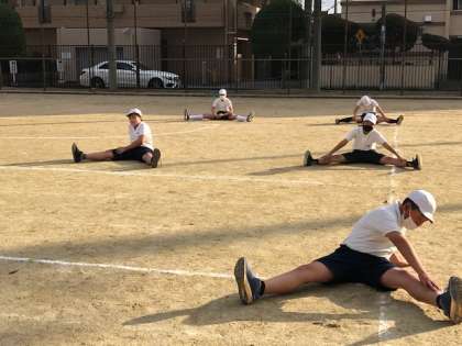 写真は準備運動を体育係中心で行っているところです。寒くなって体もかたくなってきています。おうちでもストレッチに取り組んでほしいと思います。
