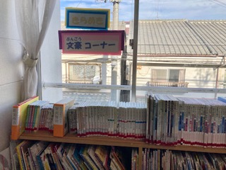 「文豪コーナー」ができました。教科書に出てくる著名な作家の本を、図書補助員さんが集めてくださっています。