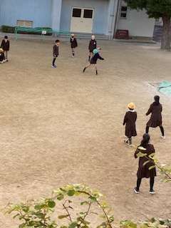 下校時刻の4時まで、運動場で男女仲良く遊んでいました。