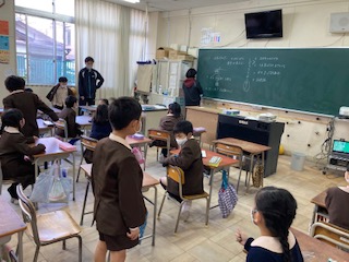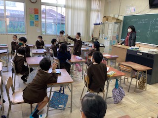 明日、1年生にチューリップの球根の植え方を教えてあげます。スイセンを植えた時のことを思い出しながら、説明します。どの班が、どこの説明をしたいか、決めています。