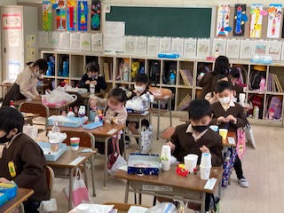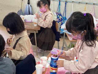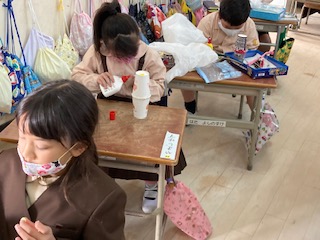 どんぐりやまつぼっくりなどを使って楽器やおもちゃを作っています。