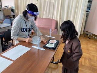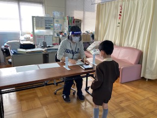 1人ずつ教室を出て、保健室に入って検査を受けました。担任の先生がついていかなくても大丈夫です!