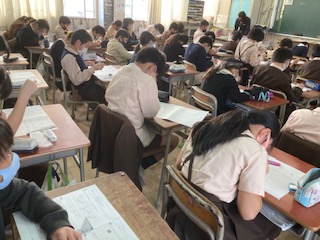 家庭科と社会科のテストをしました。学期末が近づき、まとめと復習に力を入れていきます。