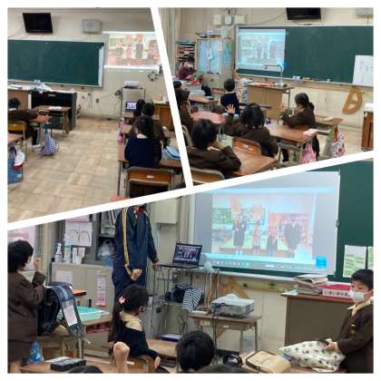 各教室で行いました。集会委員会児童が考えて録画したクイズを見ました。「3択 学校クイズ」です。給食室前の手洗い場には、水道はいくつあるか、廊下・階段を歩く時は、右側が左側、どちらでも良いかなどが問題として出ていました。子どもたちは、楽しみながら考えて答えていました。