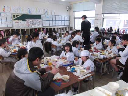 1年2組の児童プラス6年2組の児童。2年1組の児童プラス6年1組の児童です。