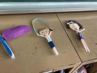 動くおもちゃを作っています。今日はぴょんウサギです。この前ストローで作ったおもちゃもできて飾っています。