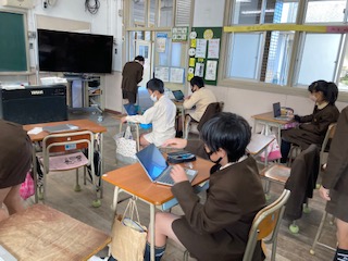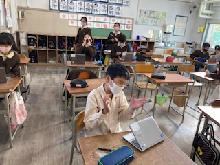 新しく入った1人一台のノートパソコンを開いてみました。家に持ち帰って使うことも可能です。大切に扱いましょう!