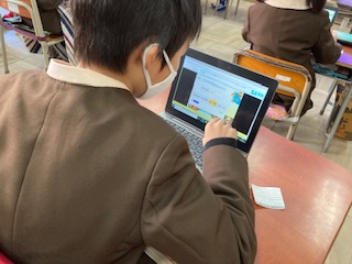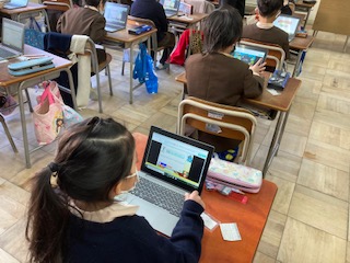 新しいパソコンを1人ずつ配ってもらいました。「すららドリル」の中から国語や算数の問題を解いていきました。