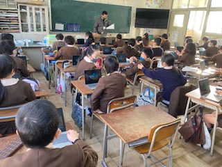 1人一台の配布されたノートパソコンを使ってみました。子どもたちはとても早く覚えていきます。どんどんこれから活用していきたいと思っています。