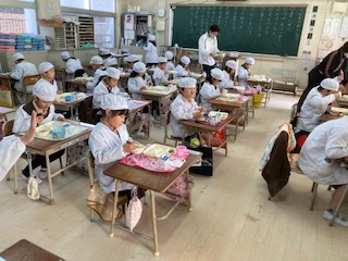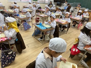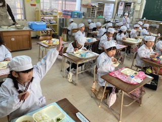 四方向を向いて、静かに食べています。おかわりが欲しい時も、静かに手をあげて待っています。