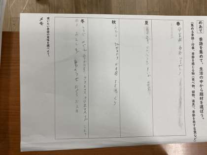 俳句を作るにあたって、それぞれの季節の季語を考えました。