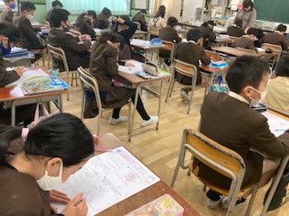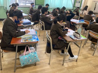 復習のドリル・テスト問題を自分のペースでやっています。終わってから、先生の解説を聞いて確認しました。