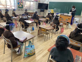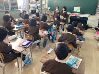 日直さんが司会をして朝の健康観察や連絡などを行っています。