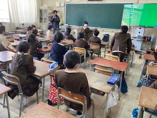 冬休みの思い出をスピーチしました。友達の話に耳を傾け、質問もたくさんしました。