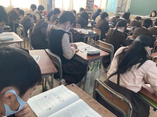 学力経年調査の2日目です。算数、理科、英語の問題を解きました。40分間、最後の1分間も惜しまず、何度もも見直しをしました。