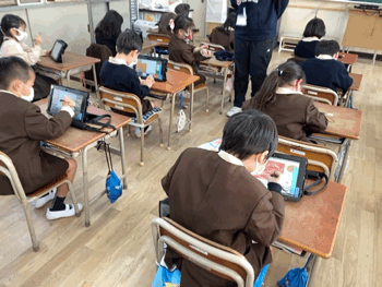 タブレットの「お絵かき」ソフトを使って絵を描いたりスタンプや文字などを押したりしていろいろな機能を確かめました。
