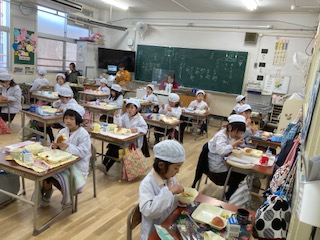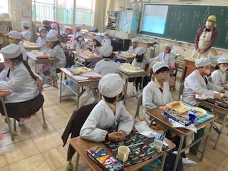 当時まだ生まれてもいなかった子ども達。給食の時間に「地震にも負けない 強い心をもって」などの歌詞に静かに耳を傾けていました。