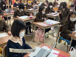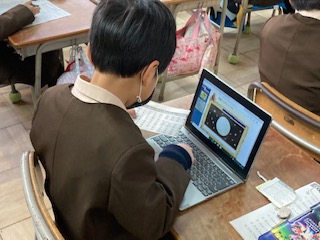 算数や国語のプリントができたら、一人一台配られたノートパソコンを出して、キーボード練習をしています。少しずつ速くできるようになってきました。