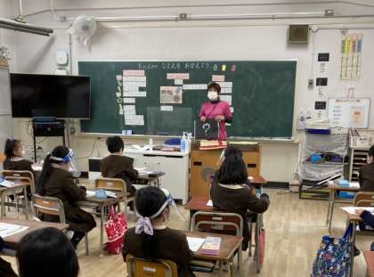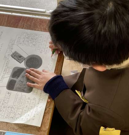 1年生の1クラスで「たべもののなまえをおぼえよう」の学習をしました。給食に登場する食べ物や、食べ物の特徴から何かを予想するクイズなどを通してみんなの体を元気にするためにいろんな食べ物の命が使われていることを知りました。
