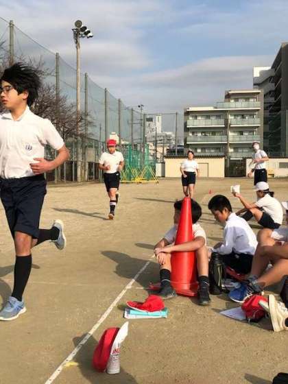 持久走に取り組んでいます。ぽかぽか陽気の小春日和の中、今日は10分間走をしました。半分ぐらいの人が前回よりも記録が伸びていました。目標をタイムカードに記録していって、自分で振り返ることができるようにしています。