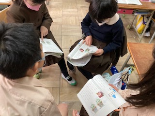 A先生が、1組で「あなのやくわり」の授業をしました。子どもたちは、文と図を見比べ、図から読み取ったことを文でも確かめたり、また、図に戻ったりしながら、図の必要性などについて考えました。