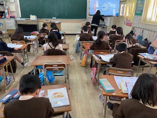 時計を読んだり、針を書いたりしました。最近はデジタルの時計が多くなっていますが、日常生活でも時計を見て何時何分、後何時間などを使っていって欲しいですね。