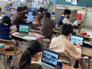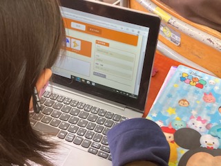 1時間目が始まる間の隙間の時間。読書をしたり、ノートパソコンに今日の「心の天気」を記入したりしています。