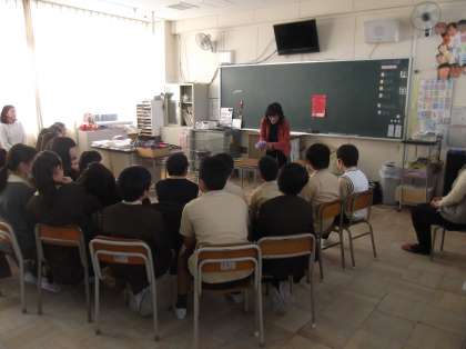 おはなしたいーすみれの皆さんの語りに、教室の中はシーンと静まり返り、子どもたちもいつしか夢中になっていました。