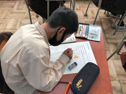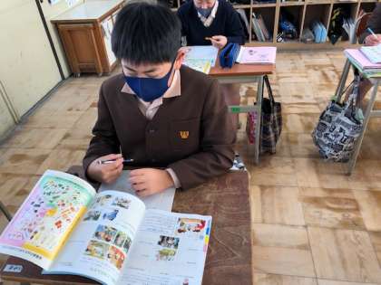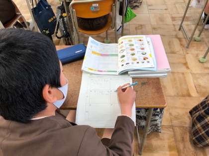 5、6年で家庭科の学習の中で学んだことをもとに教科書からいろいろ探しながらみんなに出す問題を作っています。