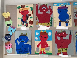 「ないたあかおに」の絵本を読んで、心に残った場面を描きました。