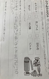 ゲーム形式のプリントで短作文を作っています。