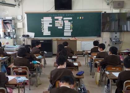 16日1年生の1学級で「たべもののなまえをおぼえよう」の学習をしました。食べ物の名前クイズや給食に出てくる食べ物を通して自分たちがたくさんの食べ物の命で育っていることに気づくことができました。