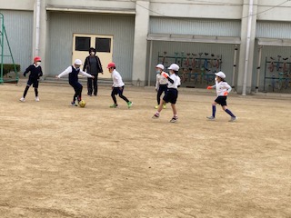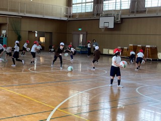 運動場や体育館で、ボールを使った運動に挑戦しています。午後から雪がちらついていましたが、子ども達は元気です!