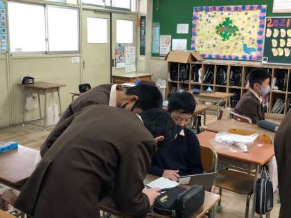 卒業まで20日を切りました。クラスでお楽しみ会を企画し、グループで内容について相談して早速準備に取りかかりました。