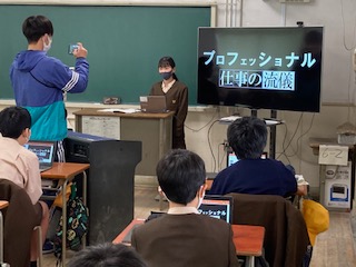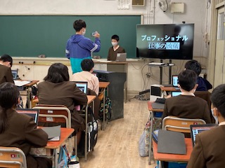 1組と2組で、自分が調べてまとめた「プロフェッショナル 仕事の流儀」の発表とビデオ撮りをしました。発表者も見る側にも緊張した時間が流れました。