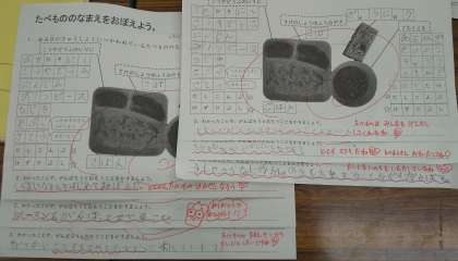 1年生の1学級で「たべもののなまえをおぼえよう」の学習をしました。食べ物には名前や命があります。自分が食べているときのことを思い出して分かったことや頑張ろうと思うことをワークシートにまとめました。