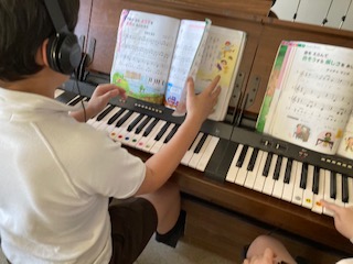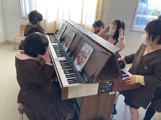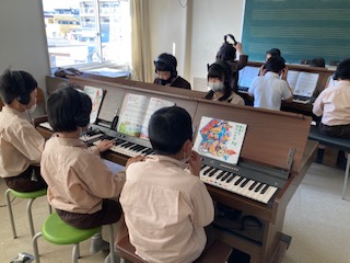 音楽室で、アンサンブルオルガンを弾きました。鍵盤ハーモニカとはまた違った音色、指の感覚でした。