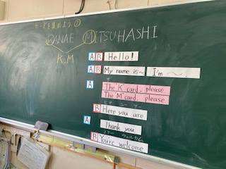 アルファベットのカードを、挨拶をしながら集めるゲームをしました。