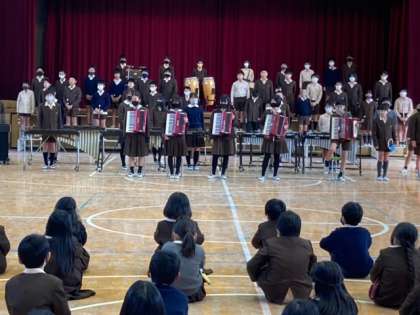 日に日に上達している6年生。心を込めて在校生に披露する演奏は、2年生のみんなの心にしっかりと残ったことでしょう。