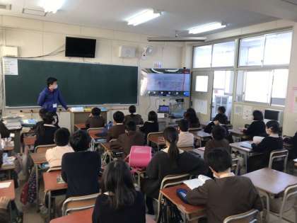 teamsで行いました。東日本大震災の話の後、国語や社会科、総合的な学習で作っている新聞などを紹介しました。