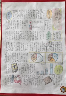 学習したことをもとに、自分で調べて考え、リーフレットなどにまとめています。文章だけでなく、写真や絵などの資料も工夫して貼付しています。